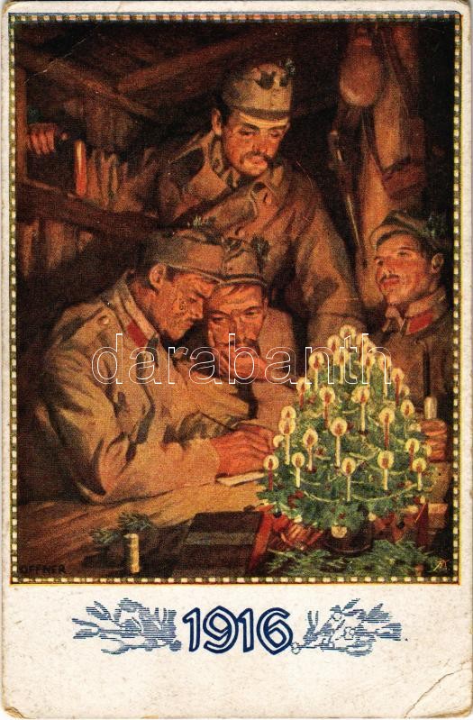 Beschreibung: 1916 Karácsony / WWI K.u.K. (Austro-Hungarian) military Christmas art postcard. Kriegsfürsorgeamt des k.u.k. Kriegsministeriums s: Alfred Offner (EB)