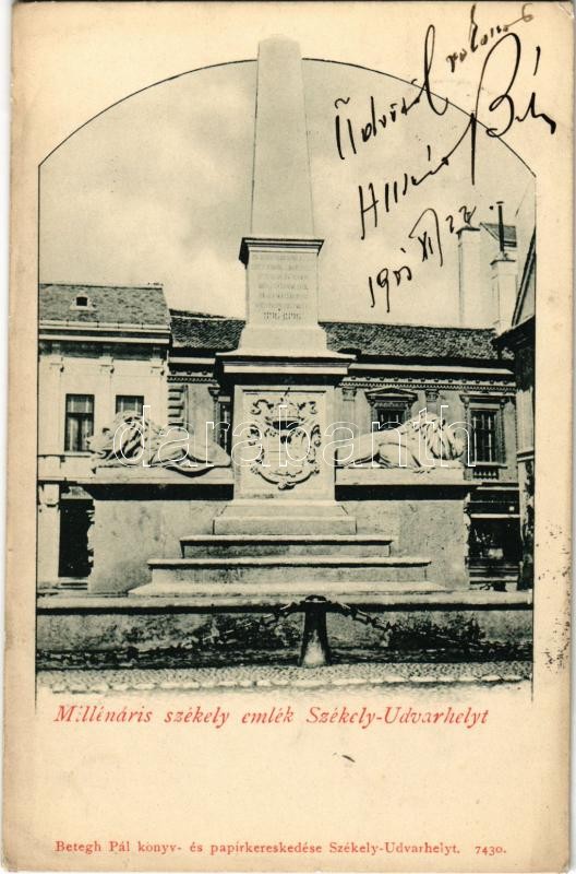 1901 Székelyudvarhely, Odorheiu Secuiesc; Millenáris székely emlék. Be... https://www.darabanth.com/de/366-Fernauktion/366.0/Ansichtskarten/Siebenburgen~1500006/1901-Szekelyudvarhely-Odorheiu-Secuiesc-Millenaris-szekely-emlek-Betegh-Pal-kiadasa-Szek~II2122892