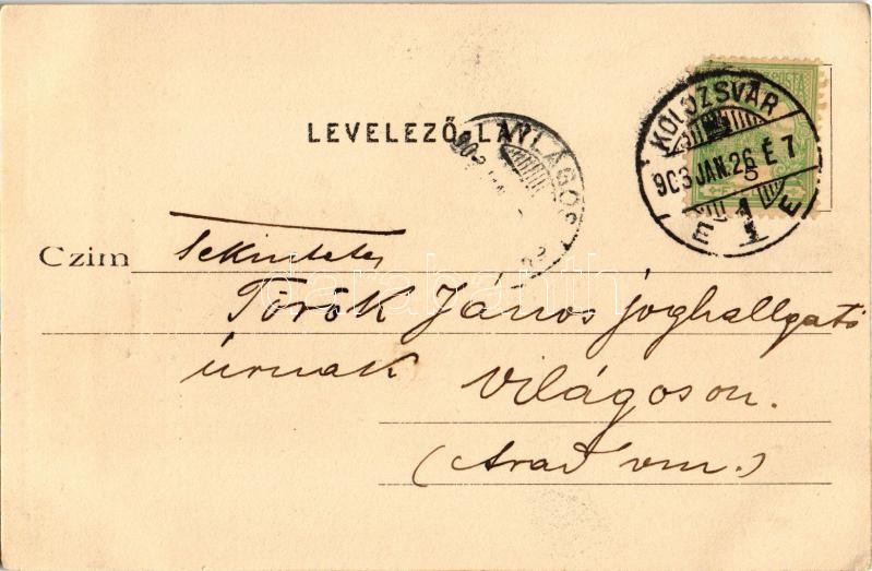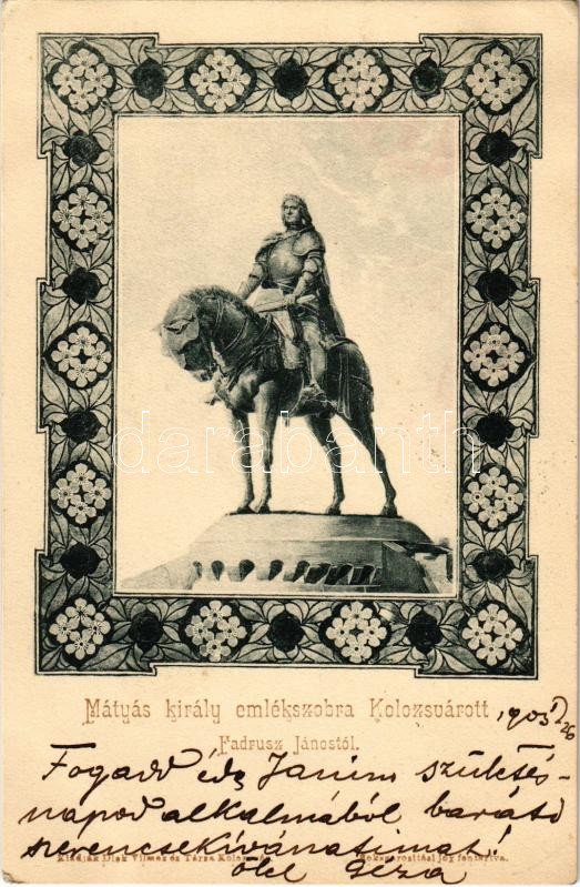 1903 Kolozsvár, Cluj; Mátyás király emlékszobra Fadrusz Jánostól. Dick Vilmos és Társa kiadása / statue of Mathias Rex, King Matthias, monument. Art Nouveau, floral (EK)