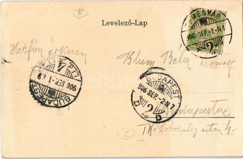 1906 Temesvár, Timisoara; Józsefváros, Hunyadi híd, Temes-Bégavölgyi p... https://www.darabanth.com/de/366-Fernauktion/366.0/Ansichtskarten/Siebenburgen~1500006/1906-Temesvar-Timisoara-Jozsefvaros-Hunyadi-hid-Temes-Begavolgyi-palota-villamos-Iosefi~II2122238