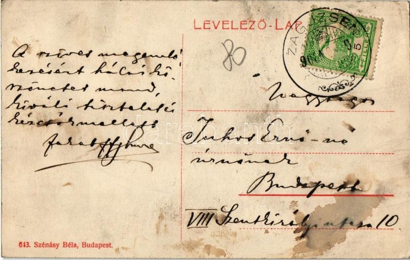 1908 Zaguzsén, Zagujeni; Jakabffy Imre kastélya és saját levele a hátoldalon. 643. Szénásy Béla kiadása / villa, castle. Letter of the owner on the backside (fl)