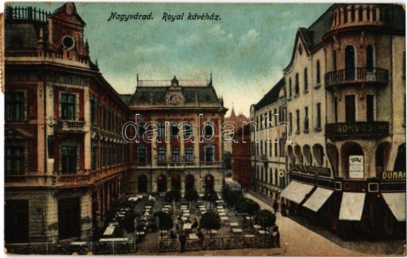 1922 Nagyvárad, Oradea; Royal kávéház, fogorvos, Duna biztosító társas... https://www.darabanth.com/de/366-Fernauktion/366.0/Ansichtskarten/Siebenburgen~1500006/1922-Nagyvarad-Oradea-Royal-kavehaz-fogorvos-Duna-biztosito-tarsasag-Koch-uzlete-caf~II2120102