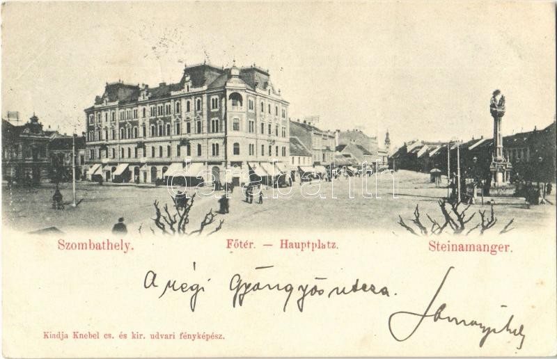 Beschreibung: 1899 Szombathely, Fő tér, Szentháromság szobor. Kiadja Knebel (EK)