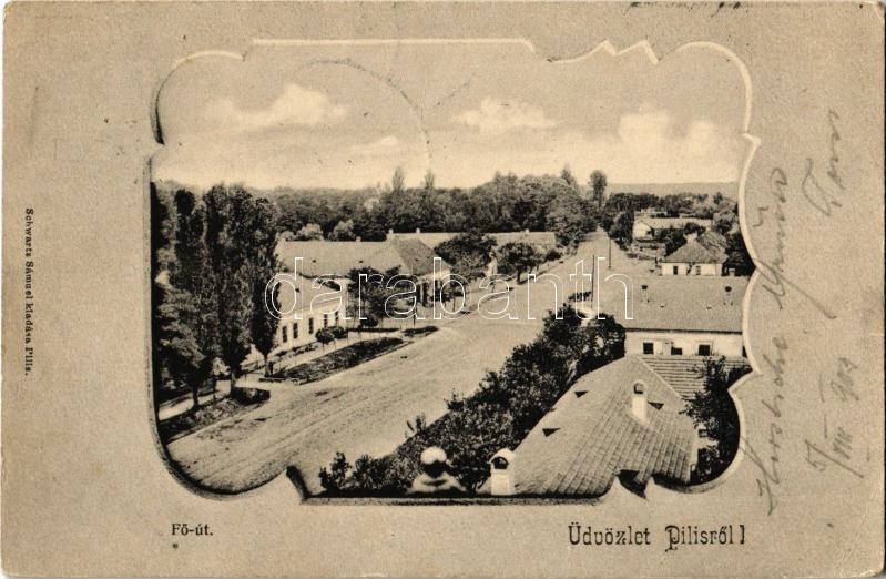 Beschreibung: 1903 Pilis, Fő út. Schwartz Sámuel kiadása, Art Nouveau (EK)