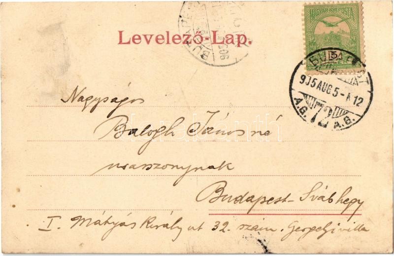 Beschreibung: 1905 Dombóvár, Vasútállomás, fűtőház, gőzmozdony. Bruck Sándor könyvnyomdája kiadása (vágott / cut)