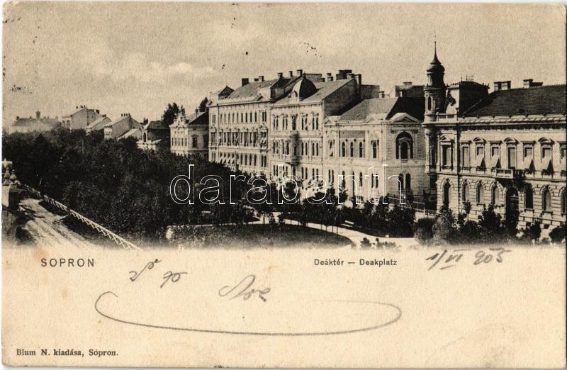1905 Sopron, Deák tér. Blum N. kiadása https://www.darabanth.com/de/366-Fernauktion/366.0/Ansichtskarten/Ungarn~1500005/1905-Sopron-Deak-ter-Blum-N-kiadasa~II2122451