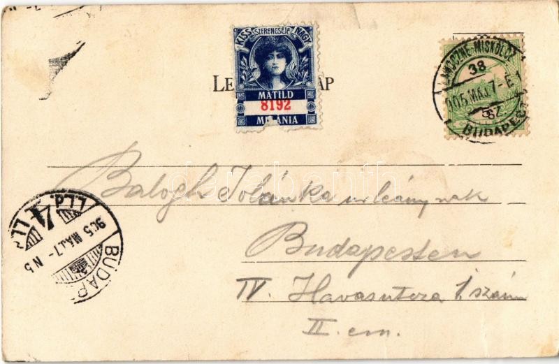Beschreibung: 1905 Szerencs, látkép, Cukorgyár a háttérben. Gönczy Mihály kiadása + "LAWOCZNE - MISKOLCZ - BUDAPEST 38. SZ." vasúti mozgóposta bélyegző (szakadás / tear)