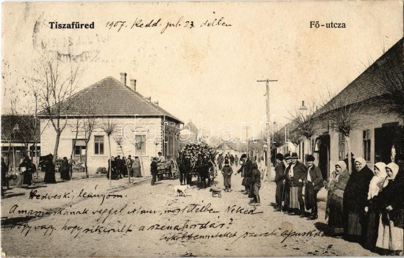1907 Tiszafüred, Fő utca, piac, italmérés, üzlet, fával megrakott szek... https://www.darabanth.com/de/366-Fernauktion/366.0/Ansichtskarten/Ungarn~1500005/1907-Tiszafured-Fo-utca-piac-italmeres-uzlet-faval-megrakott-szeker-EK~II2119410