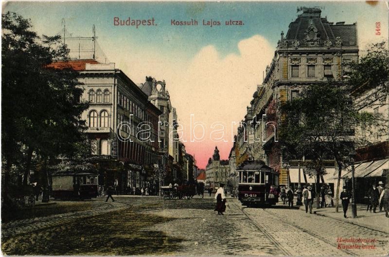 1910 Budapest V. Kossuth Lajos utca, villamos, üzletek. Taussig A. 546... https://www.darabanth.com/de/366-Fernauktion/366.0/Ansichtskarten/Ungarn~1500005/1910-Budapest-V-Kossuth-Lajos-utca-villamos-uzletek-Taussig-A-5463-Handkolorierte-Kunstlerka~II2118670