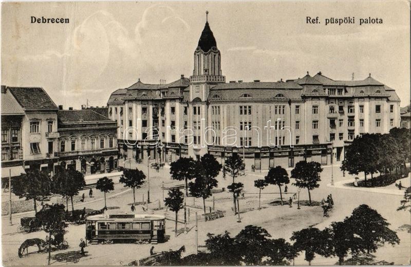 1913 Debrecen, Református püspöki palota, villamos, Bernfeld Sámuel, K... https://www.darabanth.com/de/366-Fernauktion/366.0/Ansichtskarten/Ungarn~1500005/1913-Debrecen-Reformatus-puspoki-palota-villamos-Bernfeld-Samuel-Komlossy-Lajos-uzlete-Gy~II2118904