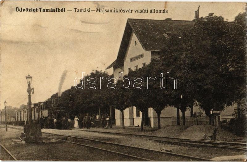 1916 Tamási-Majsamiklósvár, vasútállomás, gőzmozdony. Jeruzsálem Ede k... https://www.darabanth.com/de/366-Fernauktion/366.0/Ansichtskarten/Ungarn~1500005/1916-Tamasi-Majsamiklosvar-vasutallomas-gozmozdony-Jeruzsalem-Ede-kiadasa~II2120097