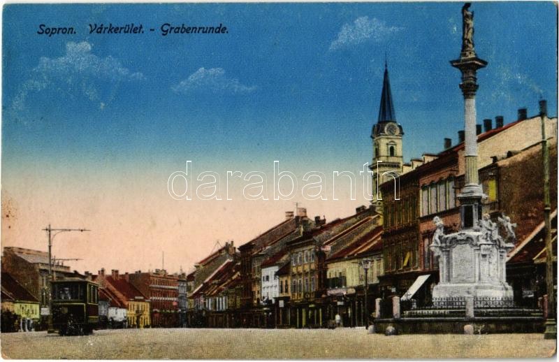 1917 Sopron, Várkerület, villamos, üzletek. Schöll Anna kiadása https://www.darabanth.com/de/366-Fernauktion/366.0/Ansichtskarten/Ungarn~1500005/1917-Sopron-Varkerulet-villamos-uzletek-Scholl-Anna-kiadasa~II2122752