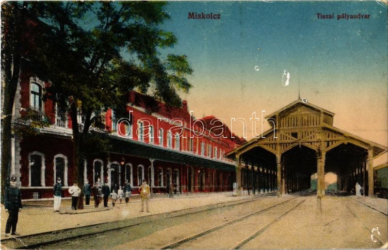 1918 Miskolc, Tiszai pályaudvar, vasútállomás, faszerkezetes váró. 191... https://www.darabanth.com/de/366-Fernauktion/366.0/Ansichtskarten/Ungarn~1500005/1918-Miskolc-Tiszai-palyaudvar-vasutallomas-faszerkezetes-varo-1917-Vasuti-LevelezolapC3~II2123009