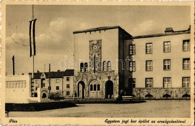1937 Pécs, Egyetem jogi kar épület az országzászlóval https://www.darabanth.com/de/366-Fernauktion/366.0/Ansichtskarten/Ungarn~1500005/1937-Pecs-Egyetem-jogi-kar-epulet-az-orszagzaszloval~II2121591