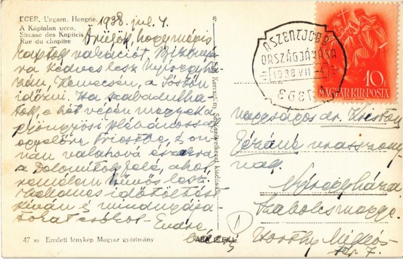 1938 Eger, Káptalan utca, Kispréposti palota + "A Szent Jobb Országjár... https://www.darabanth.com/de/366-Fernauktion/366.0/Ansichtskarten/Ungarn~1500005/1938-Eger-Kaptalan-utca-Kispreposti-palota-plus-A-Szent-Jobb-Orszagjarasa-1938-VII-4-EGER-So~II2121565