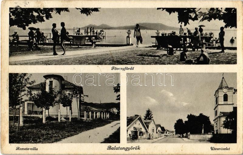 1940 Balatongyörök, Fövenyfürdő, fürdőzők, Remete villa, utca, templom... https://www.darabanth.com/de/366-Fernauktion/366.0/Ansichtskarten/Ungarn~1500005/1940-Balatongyorok-Fovenyfurdo-furdozok-Remete-villa-utca-templom-uzlet-Huppan-Gez~II2122721