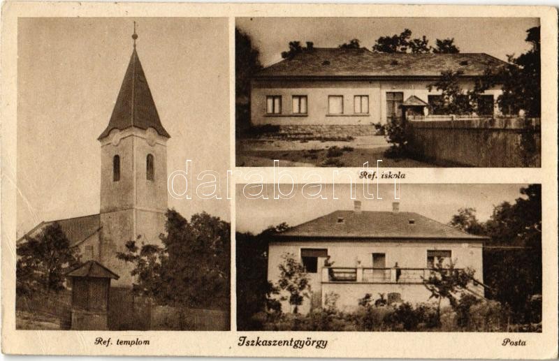 Beschreibung: 1943 Iszkaszentgyörgy, Református templom és iskola, Posta (EB)