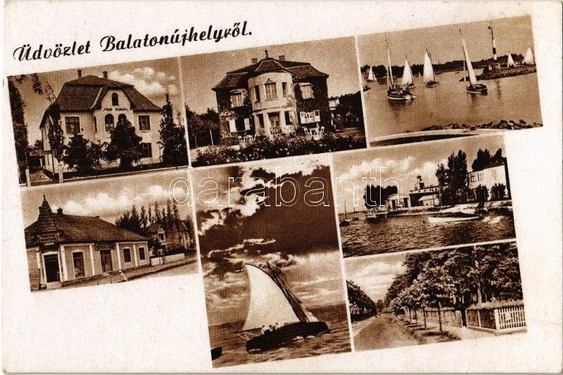 1948 Balatonújhely (Siófok), mozaiklap, rajta pensio, villa, vendéglő,... https://www.darabanth.com/de/366-Fernauktion/366.0/Ansichtskarten/Ungarn~1500005/1948-Balatonujhely-Siofok-mozaiklap-rajta-pensio-villa-vendeglo-vitorlasok-kikoto~II2122744