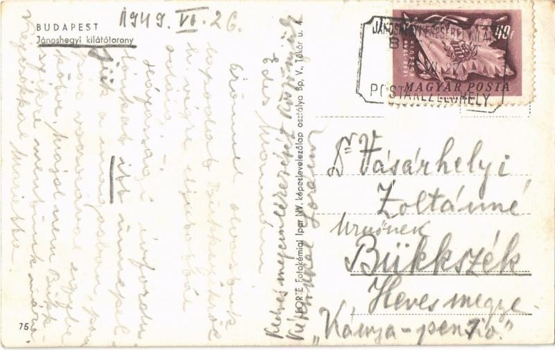 Beschreibung: 1949 Budapest XII. János-hegy az Erzsébet kilátóval + "Postakezelőhely"