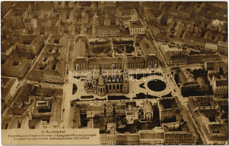 Budapest VII. Erzsébetvárosi templom. Légi felvétel a léghajóból 400 méter magasságból. Kral Sándor tüzérkapitány, a magyar aero-klub kapitányának felvétele / aerial view from an airship (EB)