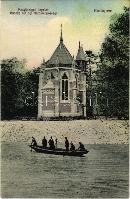 Budapest XIII. Margitszigeti kápolna, csónakázók. "Taussig" 191. (fl) https://www.darabanth.com/de/366-Fernauktion/366.0/Ansichtskarten/Ungarn~1500005/Budapest-XIII-Margitszigeti-kapolna-csonakazok-Taussig-191-fl~II2118707
