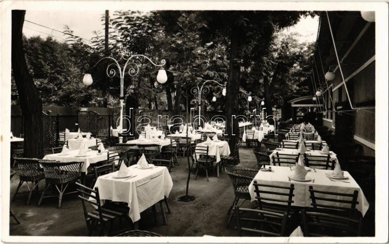 Beschreibung: Budapest XV. Rákospalota-Újpest, Horvátkert vendéglő. Tulajdonos Hózler Gyula
