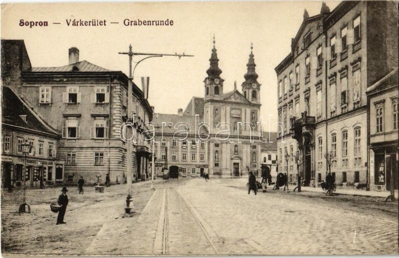 Beschreibung: Sopron, Várkerület, templom, bútor raktár, Pörtschacher T. és Borsch Lajos üzlete