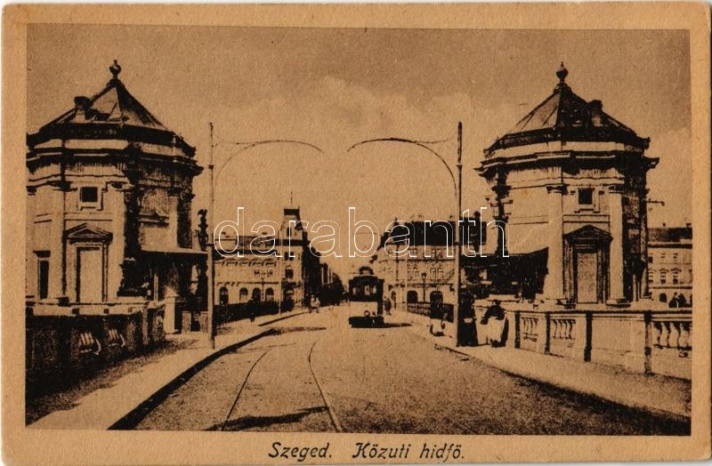 Beschreibung: Szeged, Közúti hídfő, villamos. Bartos Lipót kiadása (Rb)