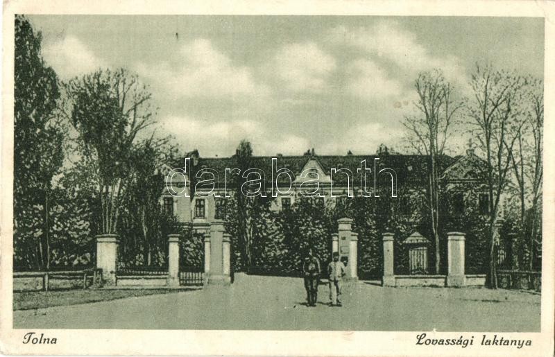 Tolna, Lovassági laktanya, katonák. Kiadja Özv. Bauer Ádámné (EK) https://www.darabanth.com/de/366-Fernauktion/366.0/Ansichtskarten/Ungarn~1500005/Tolna-Lovassagi-laktanya-katonak-Kiadja-Ozv-Bauer-Adamne-EK~II1908000