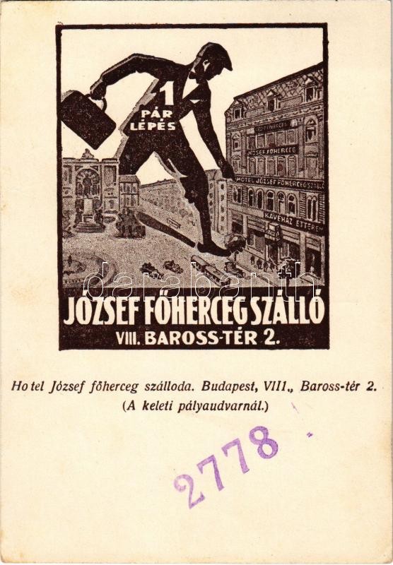Hotel József főherceg szálloda, kávéház és étterem a Keleti pályaudvarnál, reklámlap. Budapest VIII. Baross tér 2. / Hungarian hotel advertisement card (EK)