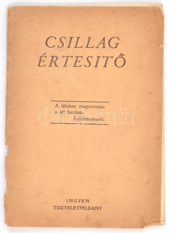 1931 Csillag Értesítő. [Jiddu] Krishnamurti beszédei, írásai, költemén... https://www.darabanth.com/de/366-Fernauktion/366.0/Bucher/Bucher-Andere-kuriositaten~1000018/1931-Csillag-Ertesito-Jiddu-Krishnamurti-beszedei-irasai-koltemenyei-1931-es-evf-1-~II2116680