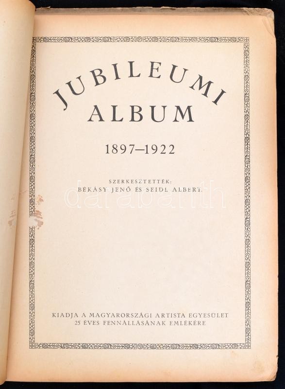 Jubileumi album 1897-1922. Bp., 1922, Magyarországi Artista Egyesület.... https://www.darabanth.com/de/366-Fernauktion/366.0/Bucher/Bucher-Andere-kuriositaten~1000018/Jubileumi-album-1897-1922-Bp-1922-Magyarorszagi-Artista-Egyesulet-Illusztralt-felvaszon-k~II2117821