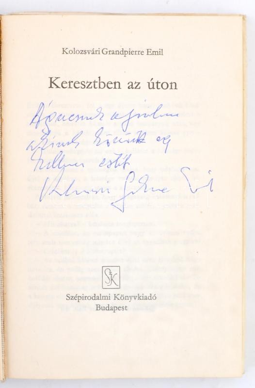 Kolozsvári Grandpierre Emil: Keresztben az úton. Bp., 1971, Szépirodalmi Könyvkiadó. Szerző által dedikálva. Kiadói egészvászon-kötés papír védőborítóval.