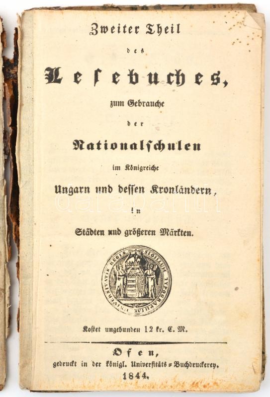 Beschreibung: Zweiter Teil des Lesebuches zum Gebrauche der Nationalschulen im Königreiche Ungarn und dessen Kronländern. Ofen, 1844. Kartonált kötés, széteső állapotban.