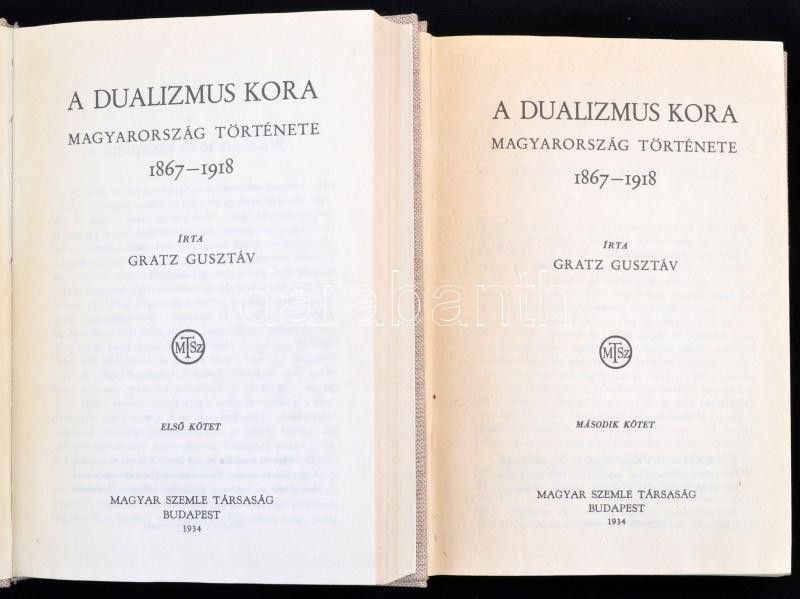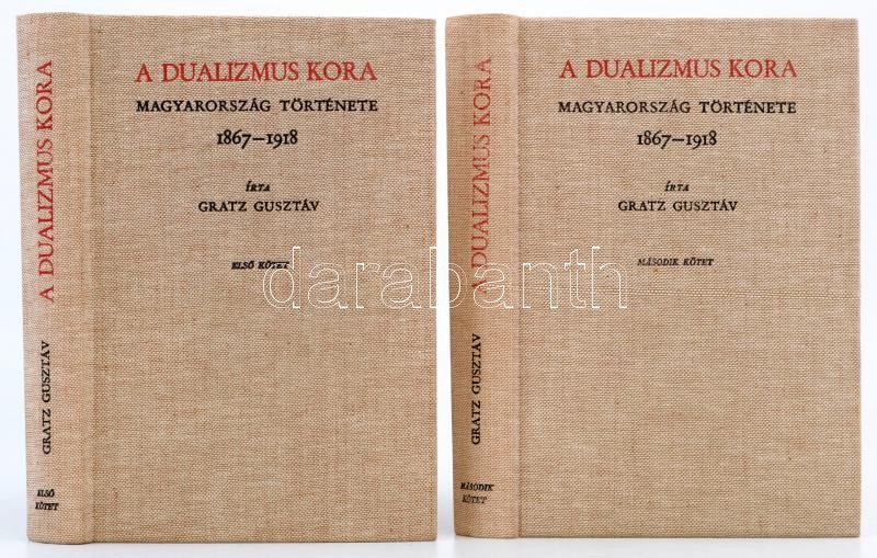 Gratz Gusztáv: A dualizmus kora. Magyarország története. 1867-1918. I-II. kötet. Akadémiai Kiadó reprint sorozata. Bp.,1992., Akadémiai Kiadó. Kiadói egészvászon-kötés.