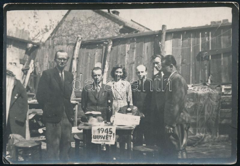 1945 Húsvét, csoportkép, fotó, 6×9 cm https://www.darabanth.com/de/366-Fernauktion/366.0/Fotografie/Foto~500020/1945-Husvet-csoportkep-foto-6C3979-cm~II2121144