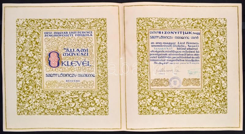 1949 Bp., Országos Magyar Liszt Ferenc Zeneművészeti Főiskola állami m... https://www.darabanth.com/de/366-Fernauktion/366.0/Kunst-Dokumente-andere-Sammelgebiete/Dokument~500017/1949-Bp-Orszagos-Magyar-Liszt-Ferenc-Zenemuveszeti-Foiskola-allami-muveszi-oklevele-Zathure~II2117747