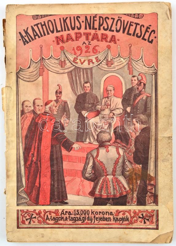 1926 Katholikus népszövetség naptára. Sérült https://www.darabanth.com/de/366-Fernauktion/366.0/Kunst-Dokumente-andere-Sammelgebiete/Drucksachen~500029/1926-Katholikus-nepszovetseg-naptara-Serult~II2123911
