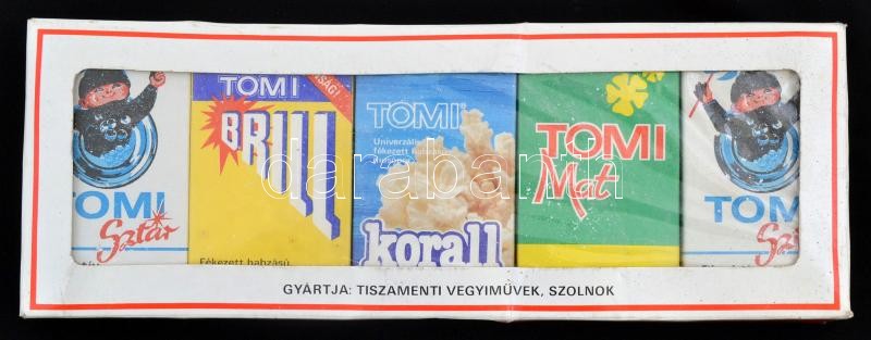 cca 1970-1980 Tomi mosópor, 5 darabos szett, eredeti dobozában, 10x28x... https://www.darabanth.com/de/366-Fernauktion/366.0/Kunst-Dokumente-andere-Sammelgebiete/Flohmarkt~500011/cca-1970-1980-Tomi-mosopor-5-darabos-szett-eredeti-dobozaban-10x28x3-cm~II2117753
