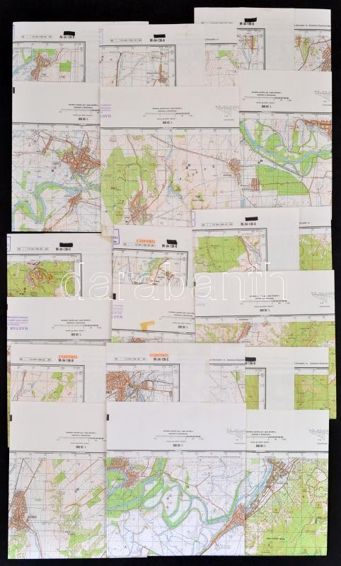 cca 1989-1990 Észak-Magyarország (Miskolc, Szerencs, Tokaj stb.) 9 db topográfiai térkép, Magyar Néphadsereg és Magyar Honvédség vezérkara felirattal és bélyegzővel, 1:50000, ca. 46,5x46,5 cm