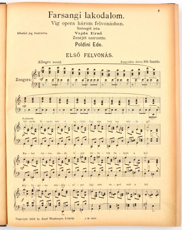 1924 Poldini Ede: Farsangi Lakodalom, vígopera 3 felvonásban, 187p https://www.darabanth.com/de/366-Fernauktion/366.0/Kunst-Dokumente-andere-Sammelgebiete/Musik-Noten~500030/1924-Poldini-Ede-Farsangi-Lakodalom-vigopera-3-felvonasban-187p~II2123458