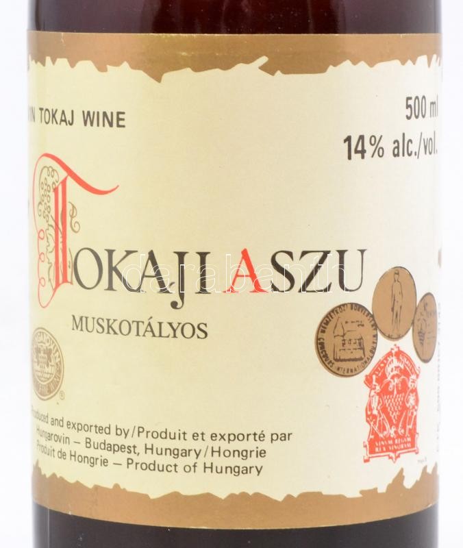 1986 4 puttonyos muskotályos Tokaji Aszú, 0,5 l https://www.darabanth.com/de/366-Fernauktion/366.0/Kunst-Dokumente-andere-Sammelgebiete/Vintage-Weine-Getranke~500014/1986-4-puttonyos-muskotalyos-Tokaji-Aszu-0-5-l~II2123392