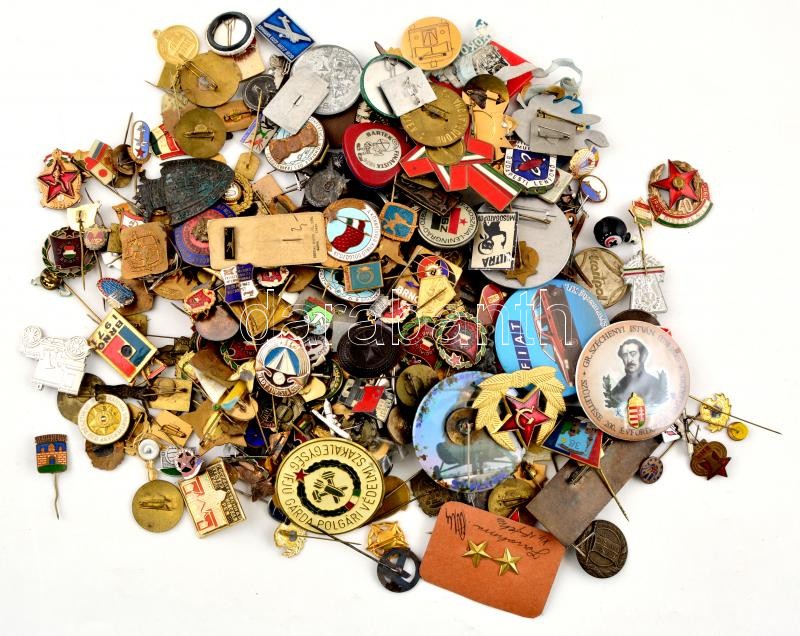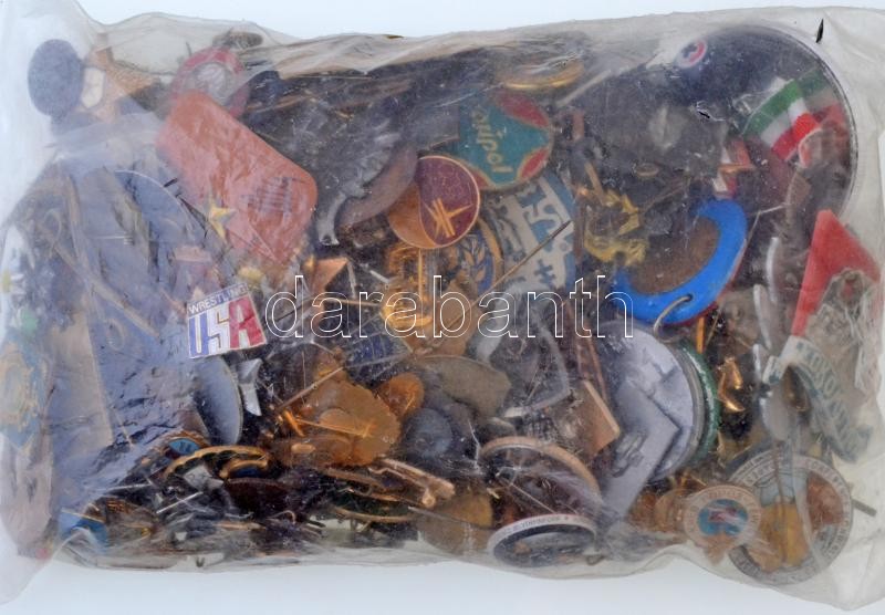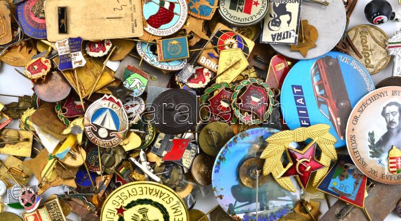 Beschreibung: Vegyes magyar és külföldi jelvény, kitűző, főleg a szocialista időszakból, sok zománcozottal ~1180g-os súlyban T:vegyes