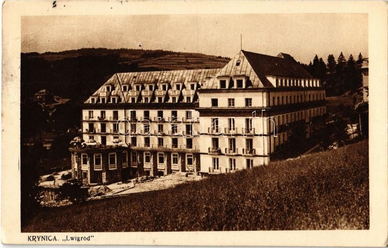 1928 Krynica, Krynica-Zdrój; Lwigród / spa, baths, hotel (EK) https://www.darabanth.com/de/367-Fernauktion/367.0/Ansichtskarten/Polen~1000078/1928-Krynica-Krynica-Zdroj-Lwigrod-spa-baths-hotel-EK~II2125086