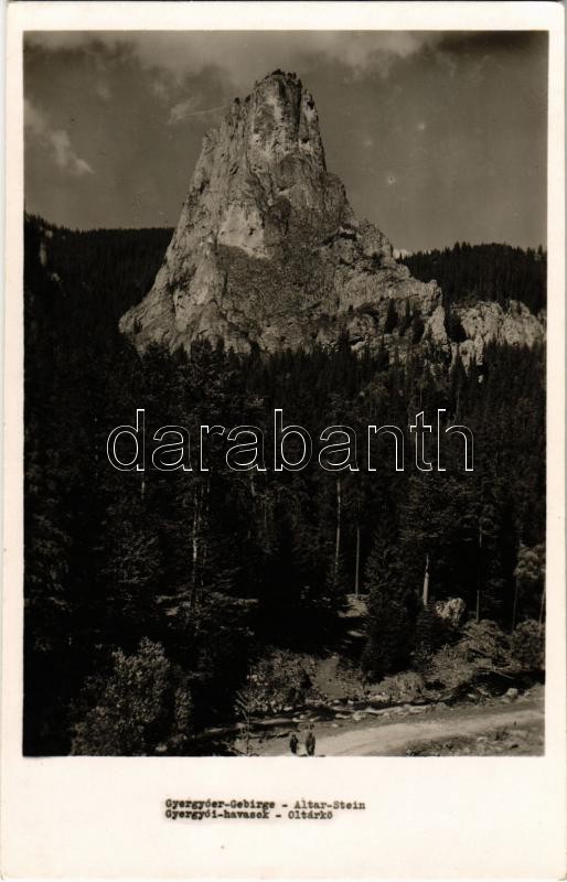 Beschreibung: Gyergyói-havasok, Muntii Giurgeu (Gyergyószentmiklós, Gheorgheni); Oltár-kő. Vákár Fivérek kiadása. Vákár László felvétele / Piatra Altarului