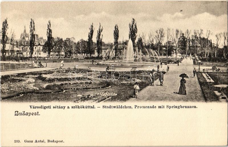 Beschreibung: Budapest XIV. Városligeti sétány a szökőkúttal. Ganz Antal 209.