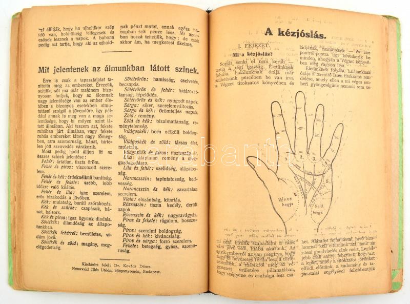 Beschreibung: A leghÃresebb és legrégibb valódi egyiptomi nagy álmoskönyv és kiváló szerencse-jós, ... Összeválogatta:Bosco. Bp.,é.n., Dr. Kovács Dénes-féle Népirodalmi Vállalat. Kiadói kopott félvászon-kötés, a szennylapokon ceruzás bejegyzésekkel, egy-két illusztrációt kiszÃneztek.