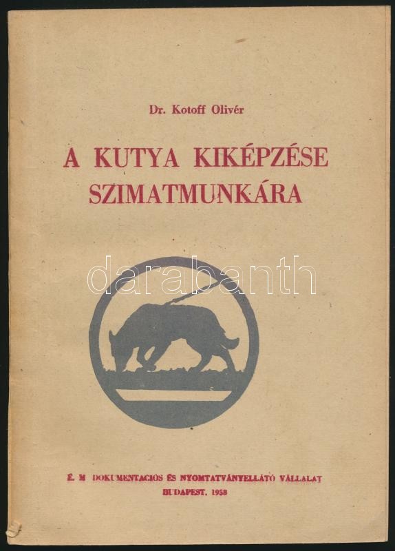 Dr. Kotoff Olivér: A kutya kiképzése szimatmunkára. Kézirat gyanánt. Anghi Csaba előszavával. Bp.,1958, É. M. Dokumentációs és Nyomtatványellátó Vállalat. Kiadói papírkötés. Megjelent 250 példányban.