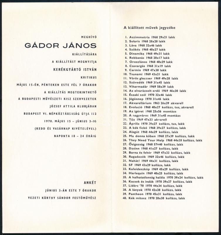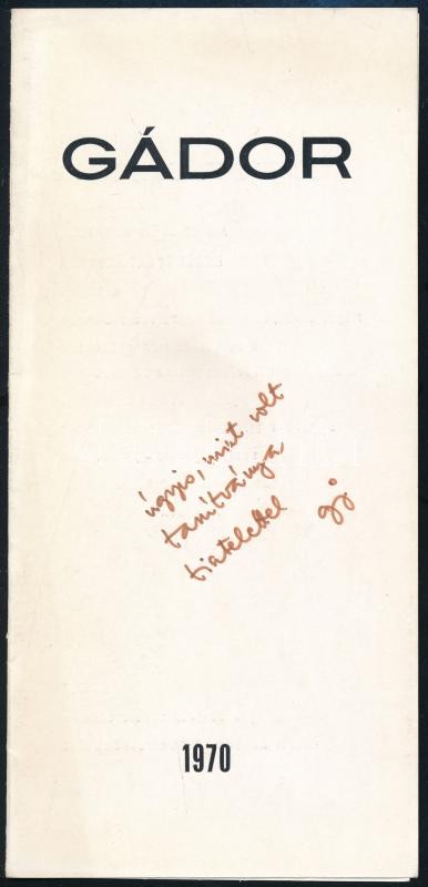 1970 Gádor János kiállítási meghívója. A művész dedikációjával. https://www.darabanth.com/de/367-Fernauktion/367.0/Bucher/Bucher-Architektur-Kunst~1500006/1970-Gador-Janos-kiallitasi-meghivoja-A-muvesz-dedikaciojaval~II2130045