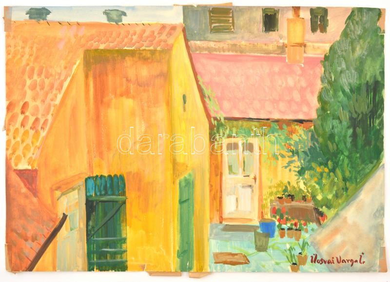 Ilosvai Varga jelzéssel: Kert. Vegyes technika, papír, sarkaiban és s... https://www.darabanth.com/de/367-Fernauktion/367.0/Gemalde-und-Grafiken/Gemalde-und-Grafiken~1/Ilosvai-Varga-jelzessel-Kert-Vegyes-technika-papir-sarkaiban-es-szelein-ragasztassal-kise~II2129992
